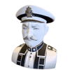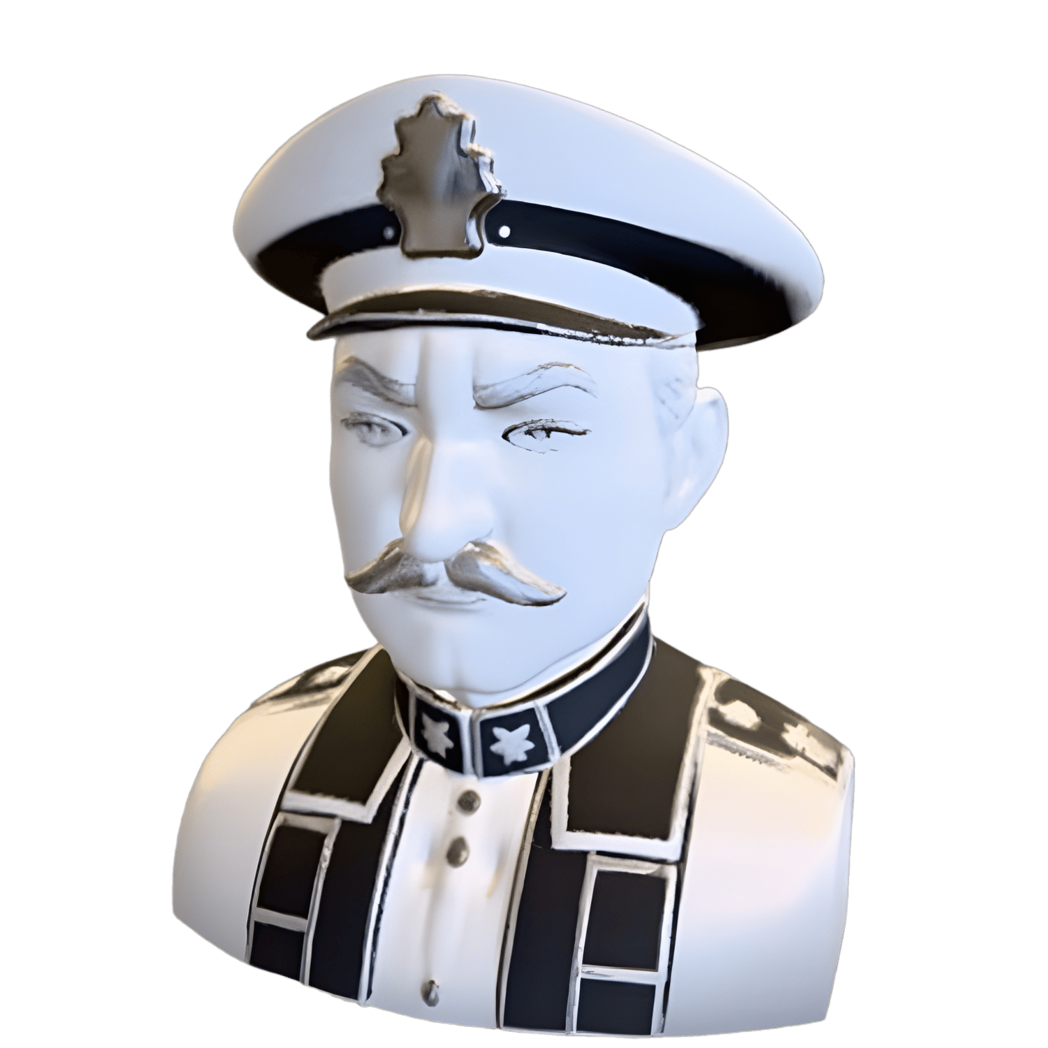 - A distinguished military/police official bust with a handlebar mustache and formal hat