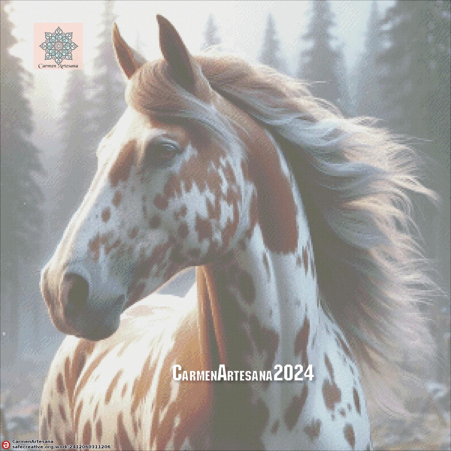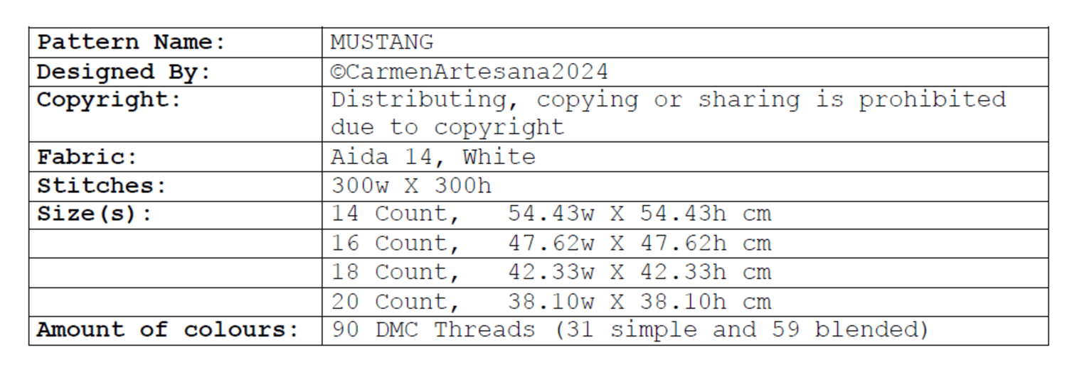PDF cros stitch pattern, MUSTANG, English/Español. DMC Threads