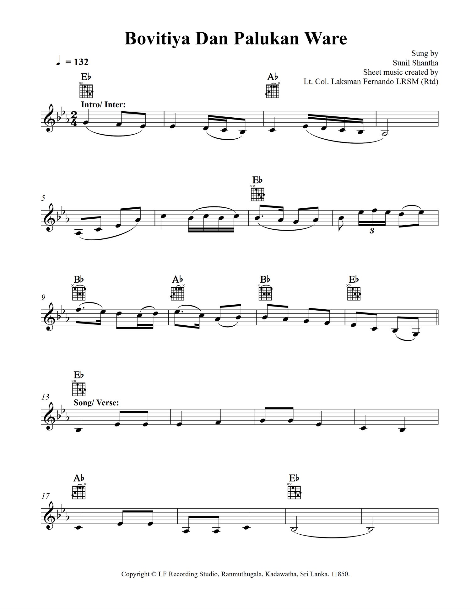 Sheet Music created by Lt. Col. Laksman Fernando LRSM (Rtd).