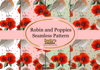 Robin and Poppies Seamless Patterns