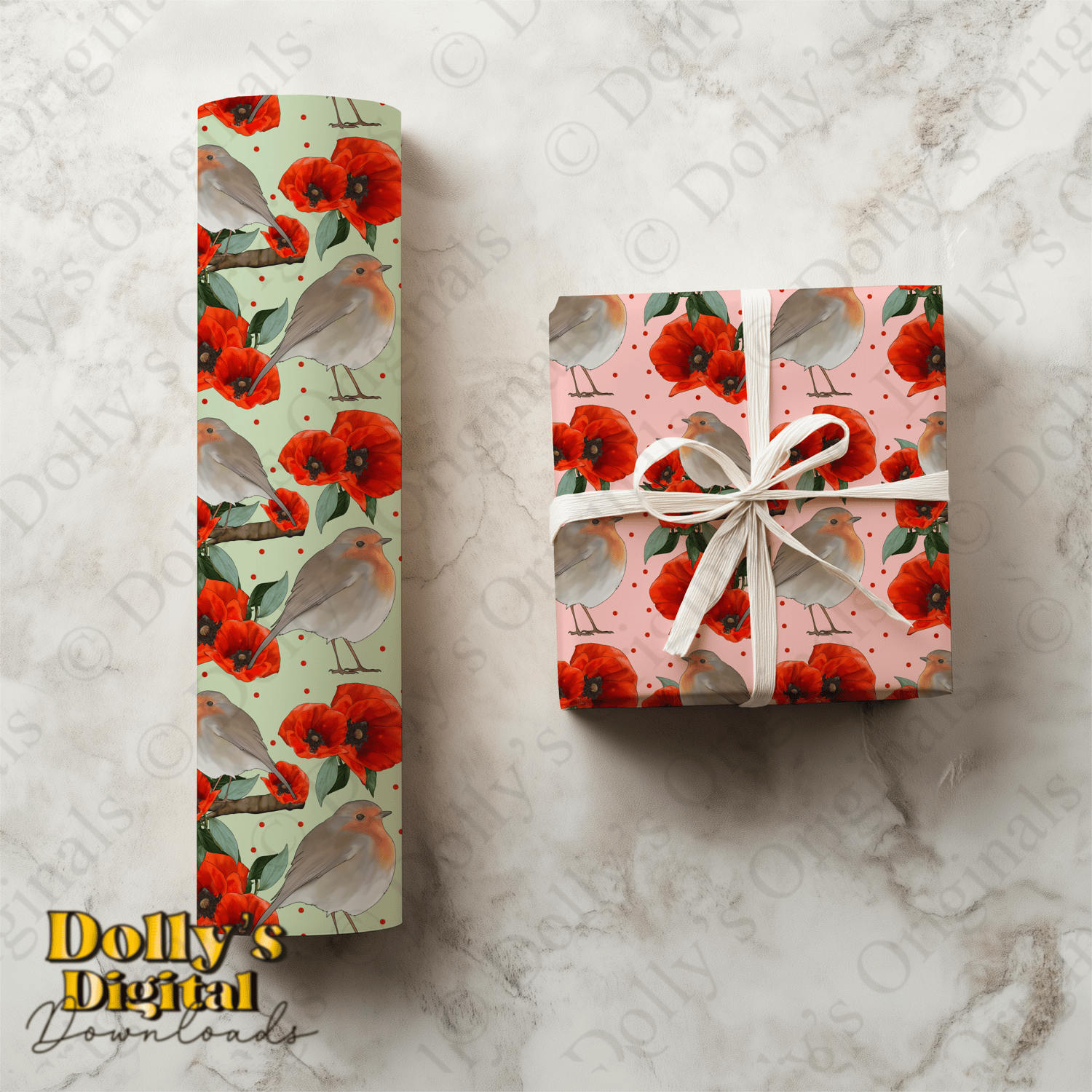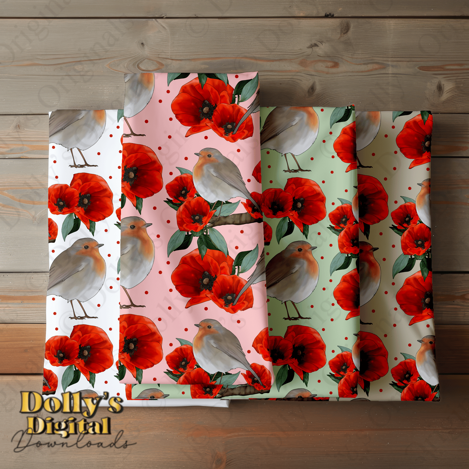 Instant digital download of our Robin and Poppies Seamless Patterns (4 PNG’s)