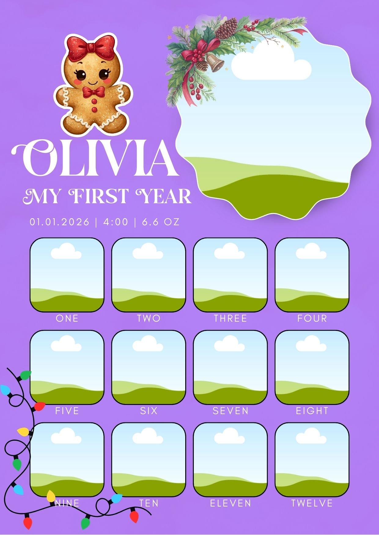 Baby First Year Photo Collage Canva Template | 12 Month Milestone Board | Drag and Drop Frame | 1st Birthday Poster | Boy Girl Christmas