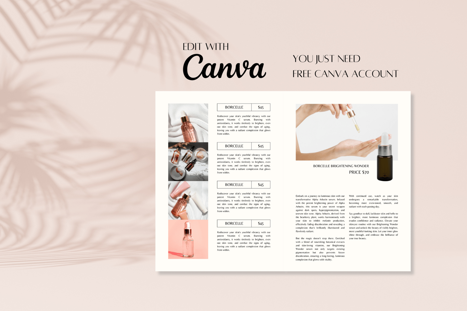 Introducing our Minimalist Skincare Catalog template! Elevate your skincare brand with sleek design and minimalist elegance.