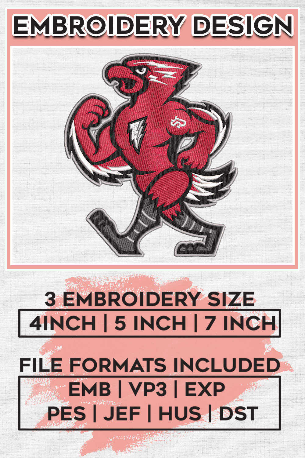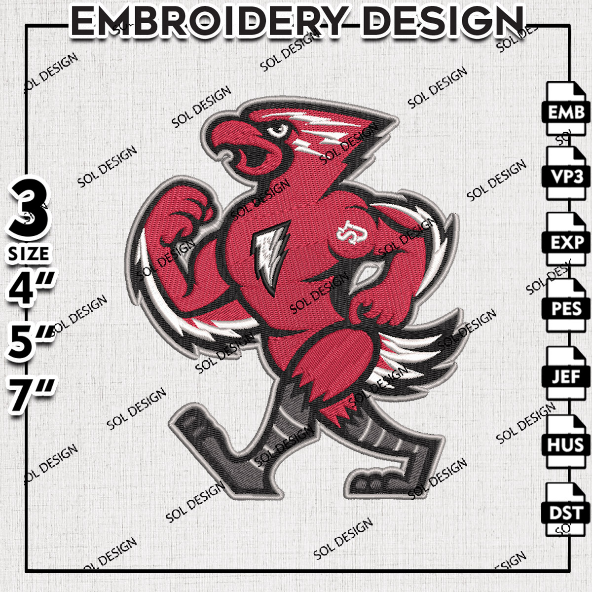 St. John's Red Storm NCAA College Football Team Mascot Logo Embroidery Designs, NCAA St. Johns Red Storm Machine Embroidery Files, NCAA Logo embroidery designs, NCAA St. Johns Logo, Digital Download