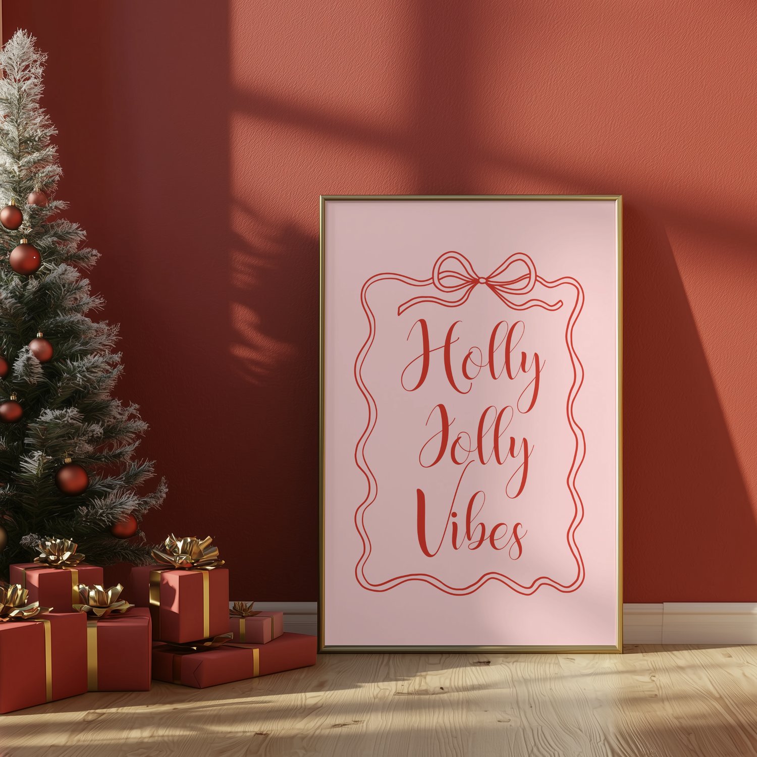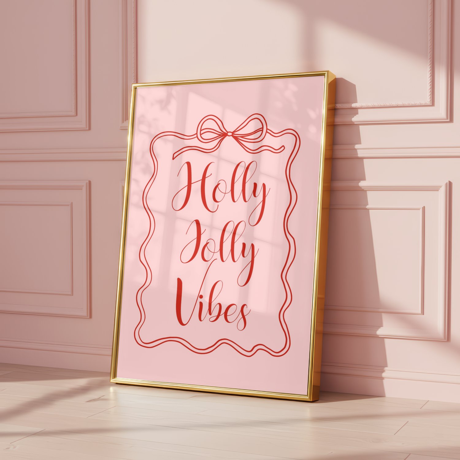 Holly Jolly Vibes Christmas Wall Art | Pink Holiday Printable | Festive Quote Print | Modern Christmas Decor (Digital Download)