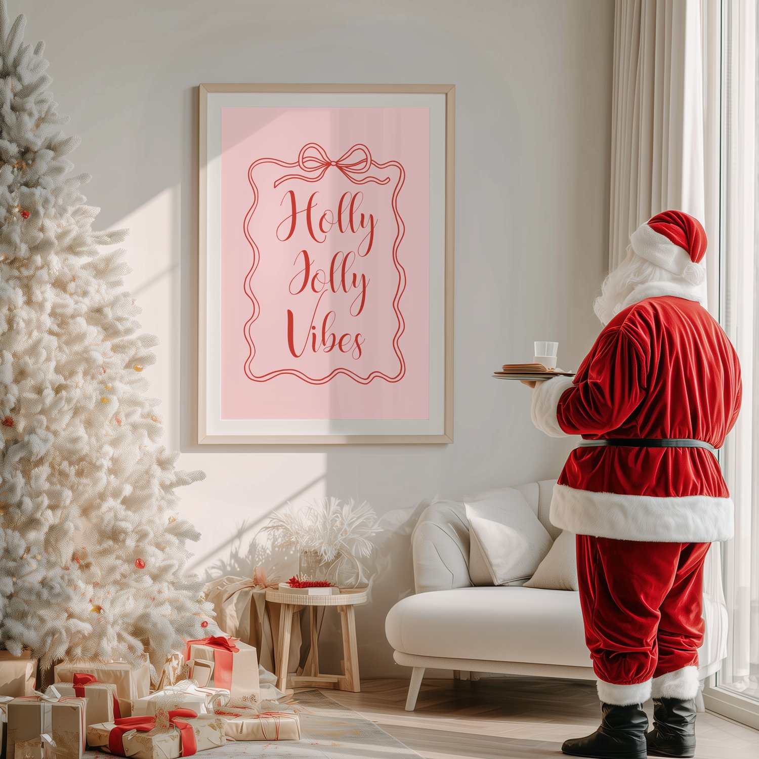 Bring a cheerful pop of pink to your holiday decor with this Holly Jolly Vibes printable wall art — the perfect mix of modern charm and Christmas spirit!