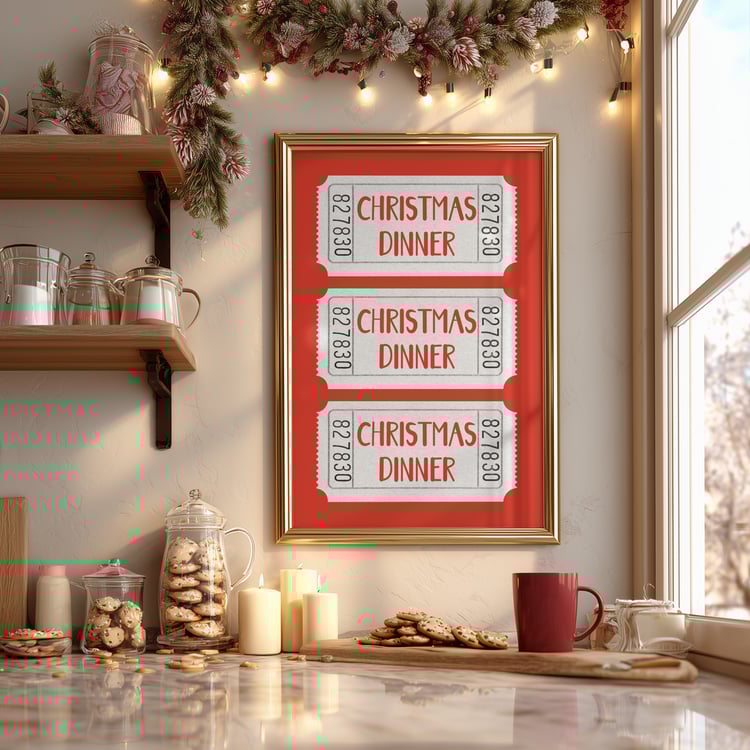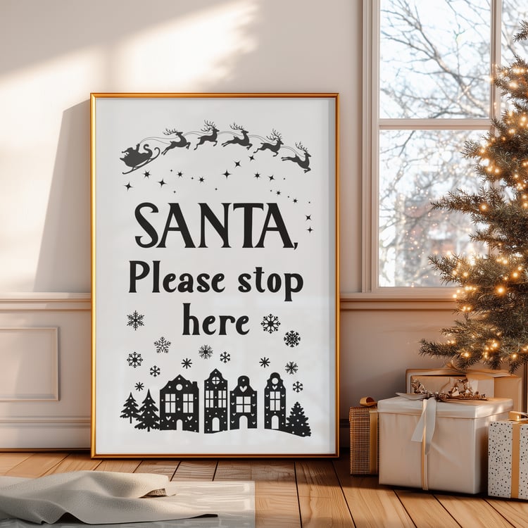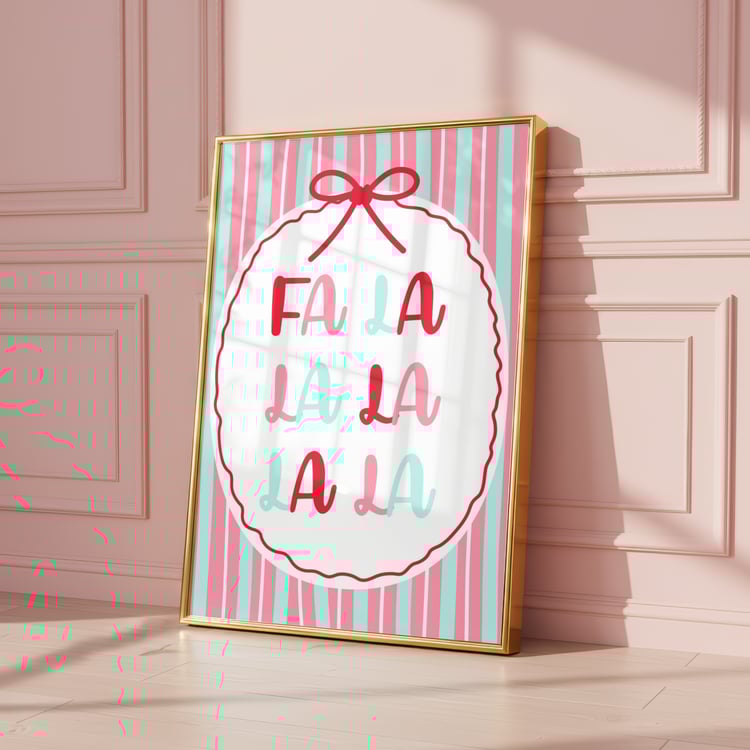 This digital download features a whimsical red script on a blush pink background, surrounded by a festive ribbon border. It’s ideal for cozy living rooms, bedrooms, or as part of your holiday gallery wall.