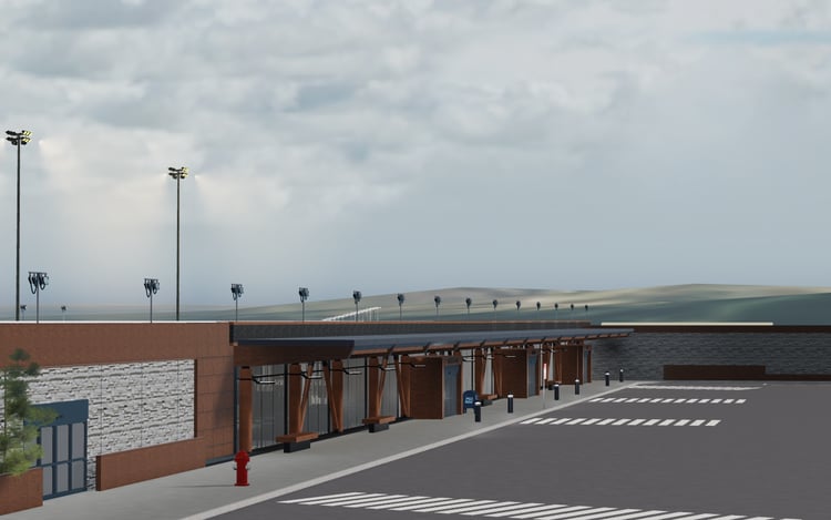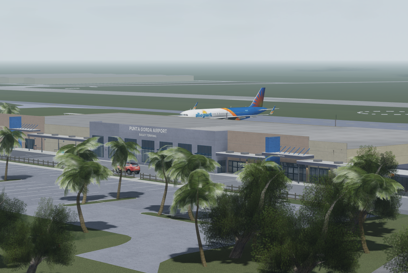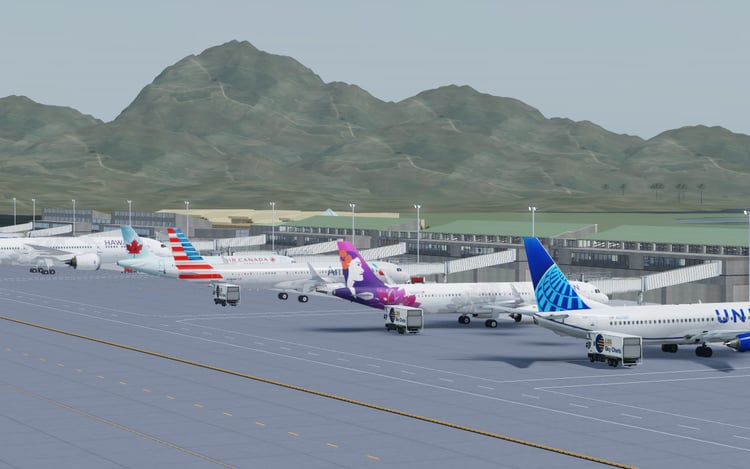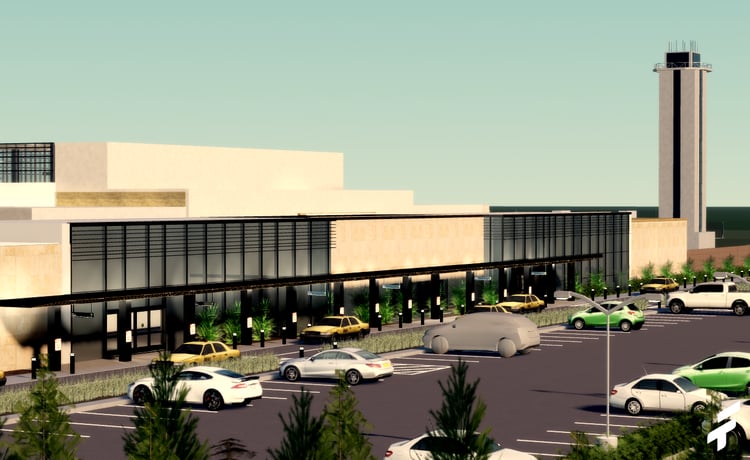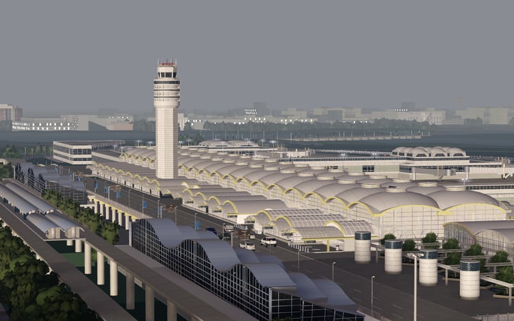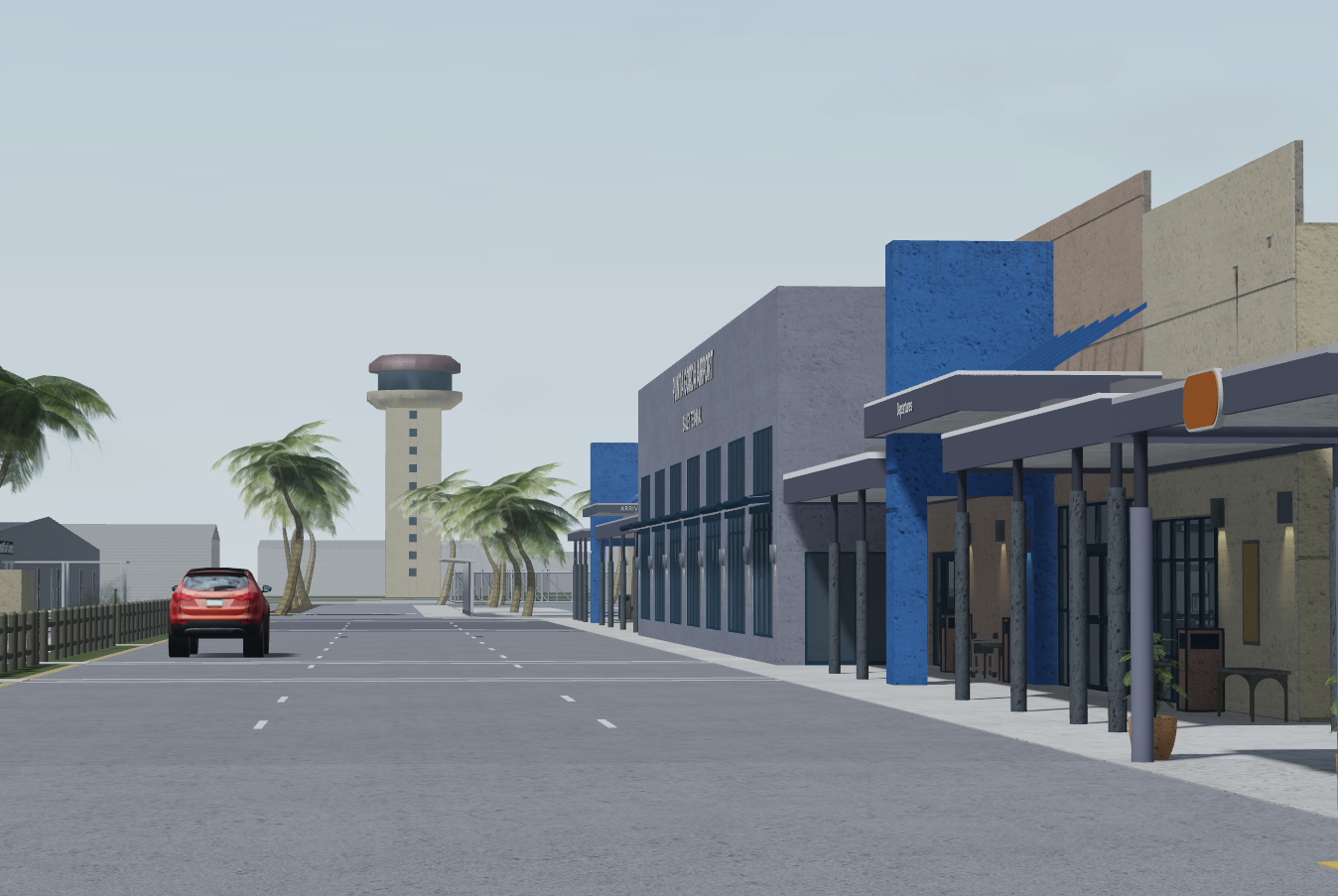 -Detailed interior with storefronts, check-in area, and security area. Does not include airport seats in gate area.