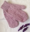These mittens are a lovely quick knit, with just a small amount of pattern to make them fun. Great for making as a gift or as a spare pair to leave in the car. I used a speckled yarn, using a plain colour makes the twist pattern more prominent. A written pattern Worked flat with a seam.