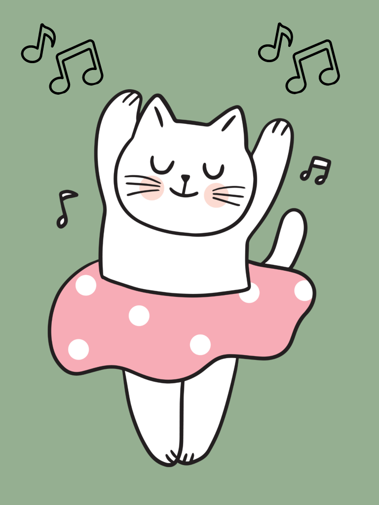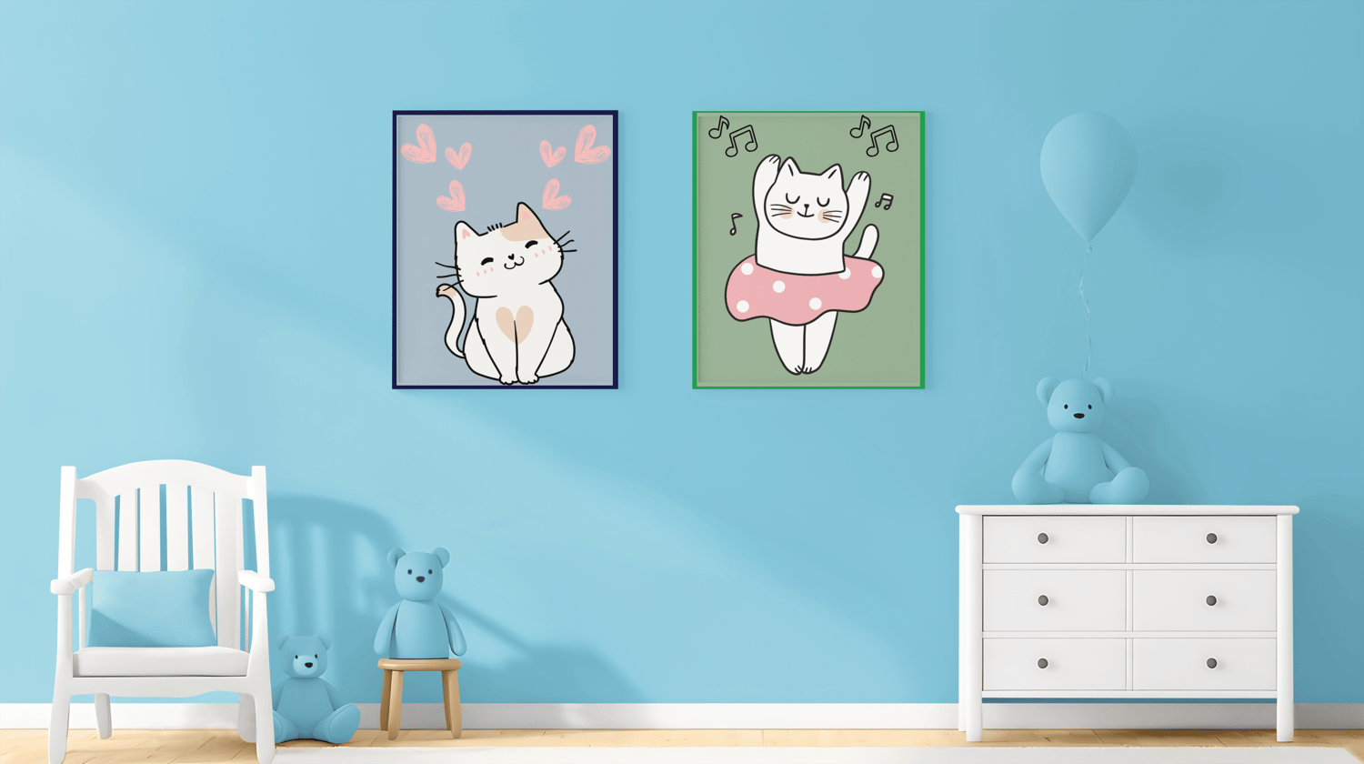 Two cats in love with hearts and musical notes — simple, charming, and purr-fectly sweet.