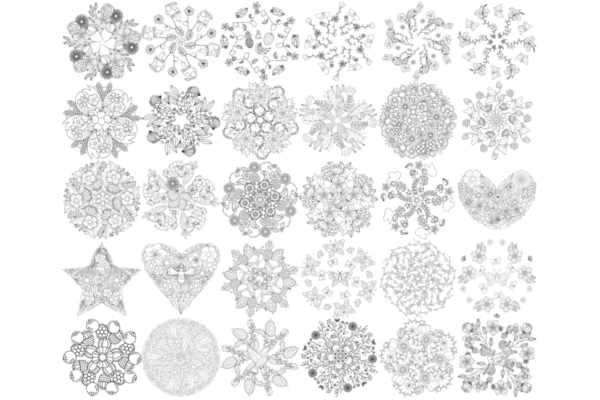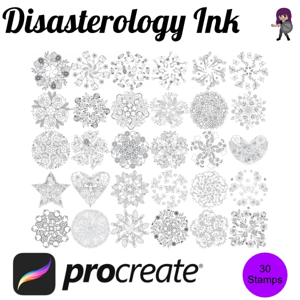 Floral Mandala Flower Set 2 Procreate Brush Stamps, 30 Floral Stamps