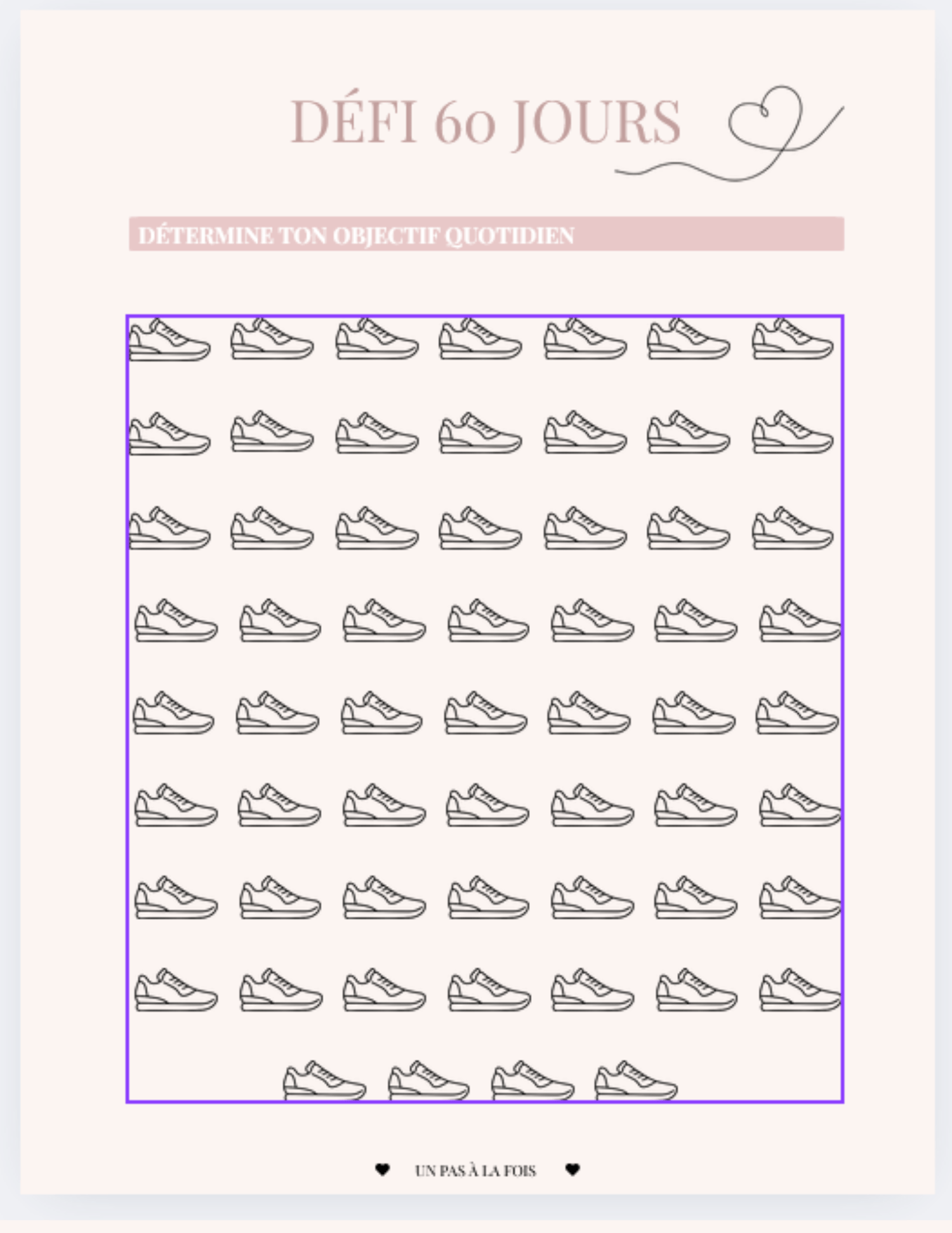 Le tout en format simple, imprimable, visuel et motivant. Chaque challenge dure 60 jours, pour te créer un vrai momentum.