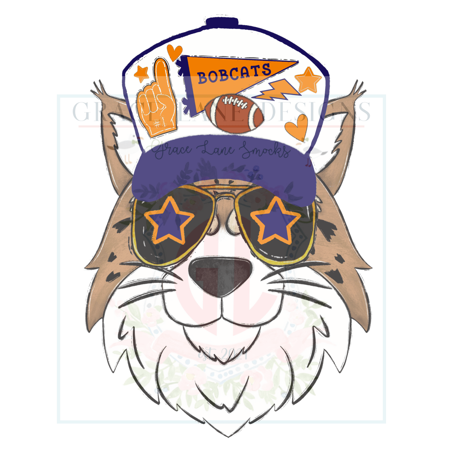 NAVY ORANGE BOBCAT Trucker Hat png Hand Drawn Procreate Digital Download Tailgate Football Game Cheerleader