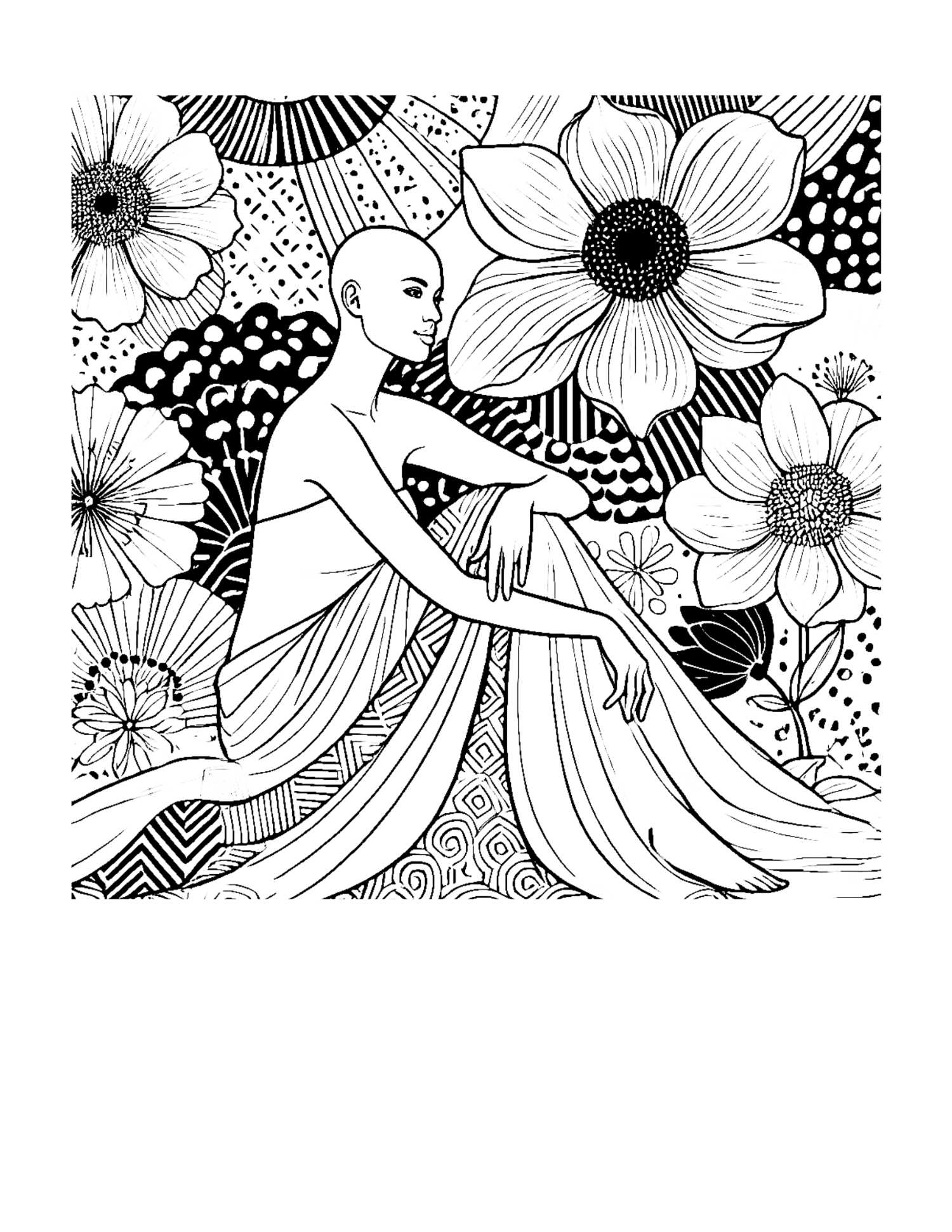 Each template comes with 158 pages of beautifully crafted, black-and-white line art illustrations that radiate courage, confidence, and grace. These captivating images are not just about coloring – they are about empowering women to feel strong, beautiful, and resilient as they navigate their healing process.