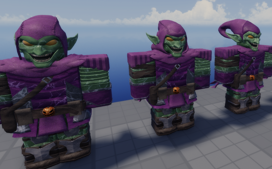 Green Goblin character models, based loosely on a few designs, what you see is what you get.