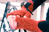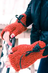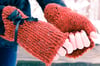 Size: S (M, L); 6 (7, 8.25)” palm circumference; 7 (7.75, 8.75)” length from cuff point to tip. The stretchy garter stitch will fit a wide range of hand sizes; sample shown in size S worn on a 7” circumference hand.