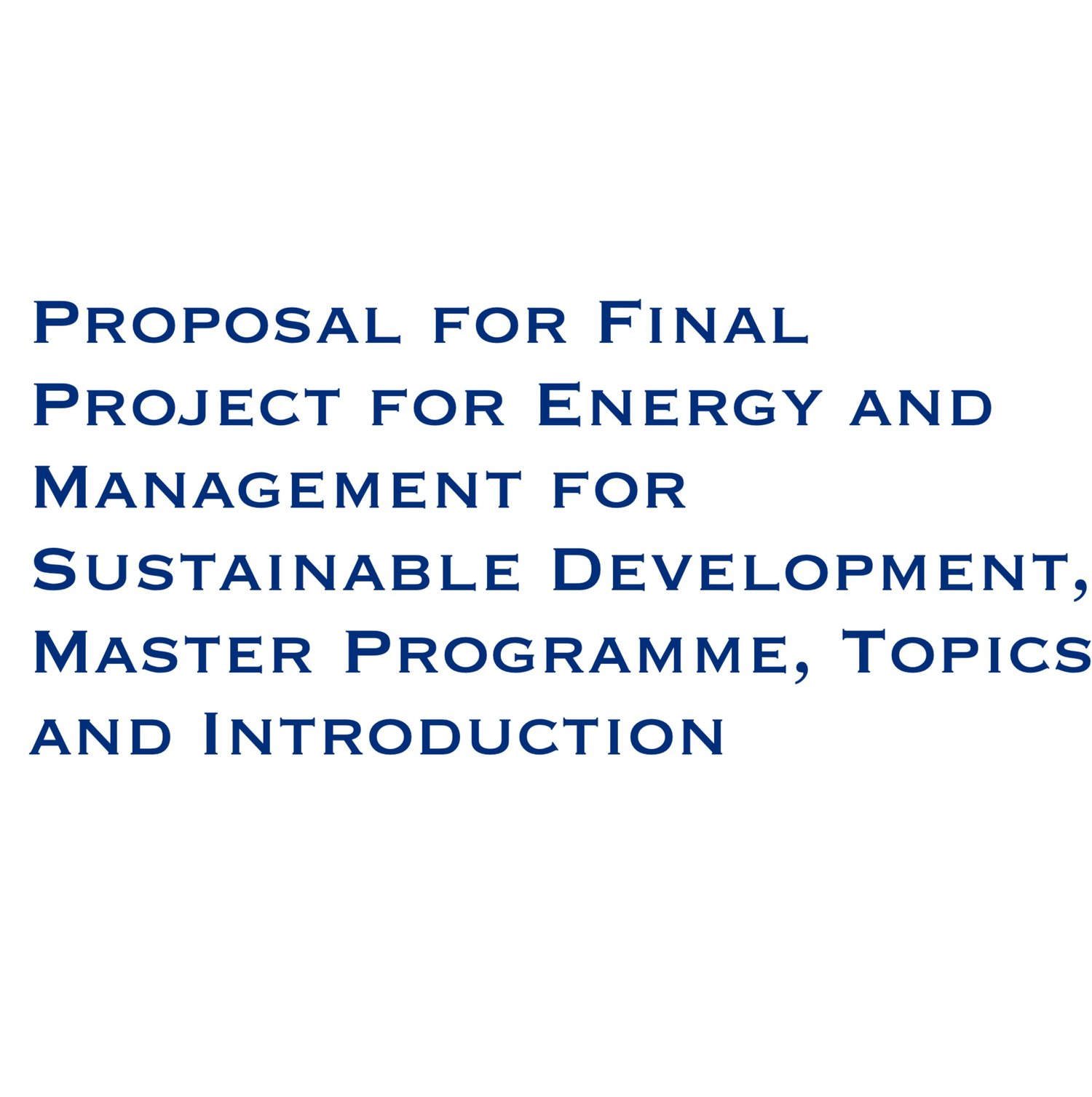 25 Proposal for Final Project for Energy and Management for Sustainable Development, Master Programme, Topics and Introduction