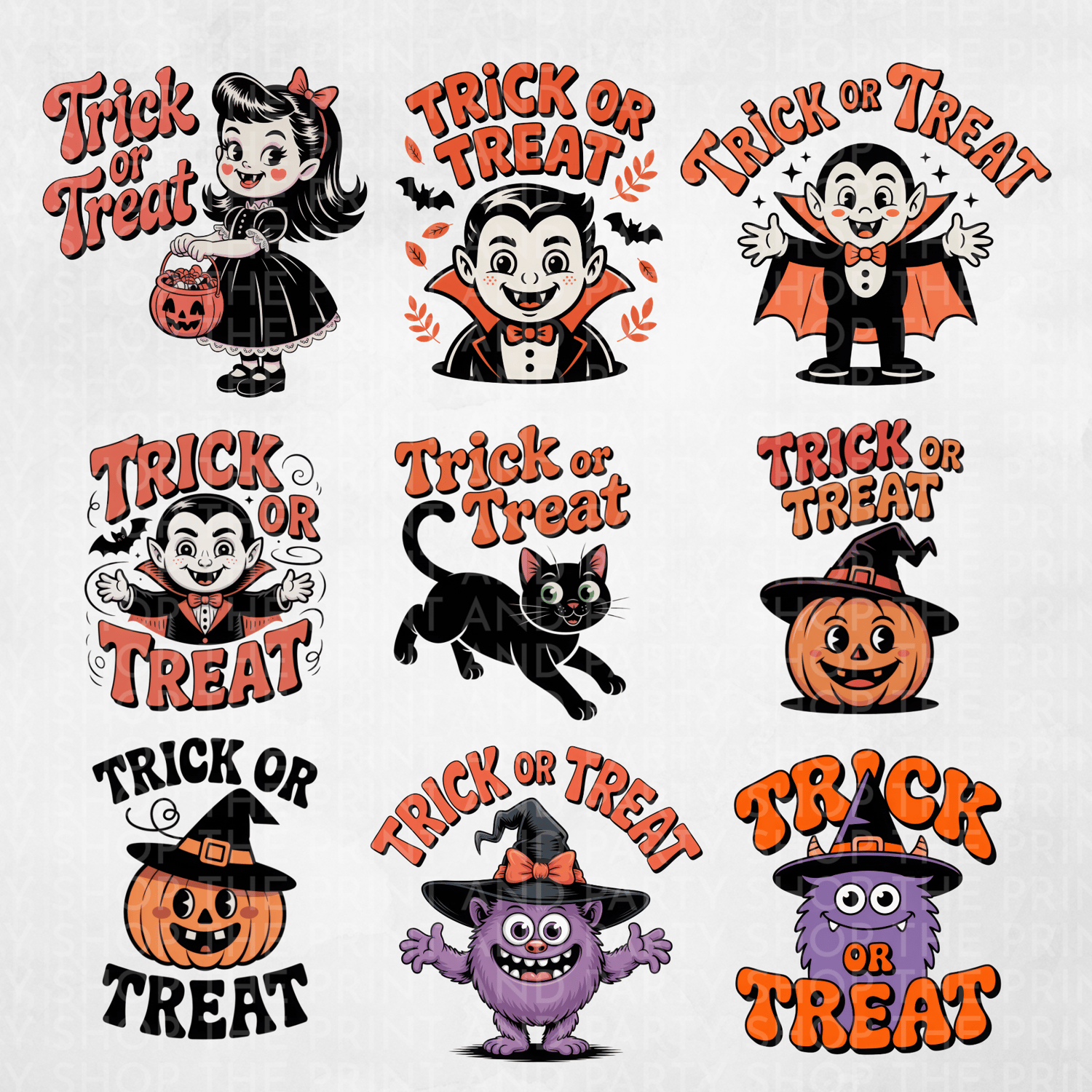Retro Halloween Trick or Treat 17 bundle Images png halloween crafting