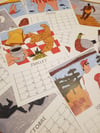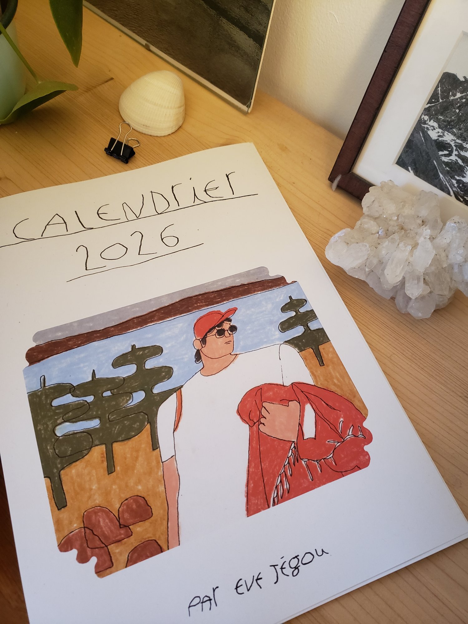 Calendrier 2026 avec une illustration pour chaque mois. Chaque illustration a été pensée autour de la thématique de la nage en eau libre.