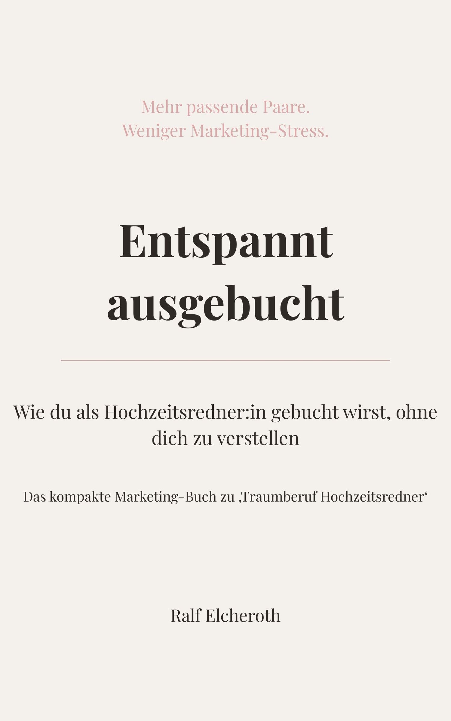 „Entspannt ausgebucht“ ist dein kompaktes Marketing-Buch, wenn du als freie:r Hochzeitsredner:in gebucht werden willst, ohne dich zu verstellen. Statt „Du musst nur täglich Reels posten“ bekommst du hier einen ruhigen, klaren Weg, der zu dir und deinen Wunschpaaren passt.