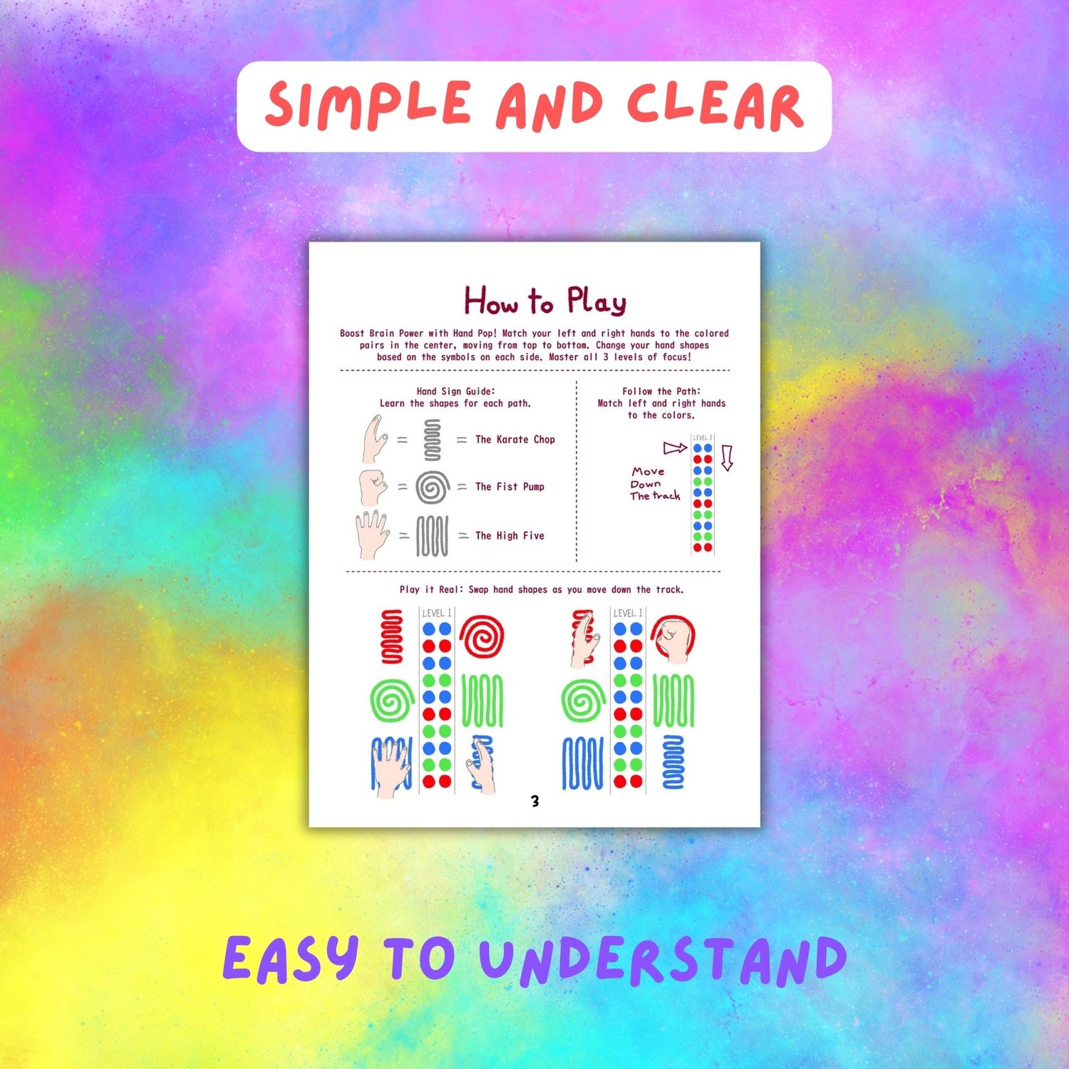 🎉 **Boost Brain Power with Hand Pop!** Kids follow colorful zigzag/loop/wave paths using LEFT & RIGHT hands in fun shapes: