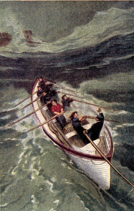 "The old man's on the bridge. No talkin' in here. Go below and tell your troubles to your little playmates, sonny."