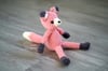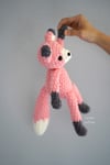 You can customize Flynn using classic fox colors of red, black (or dark brown), and white. You can also opt for a pastel look with the pink, grey, and white that I have selected. Different yarn fibers, such as velvet, may also be used instead of blanket yarn for a soft look!