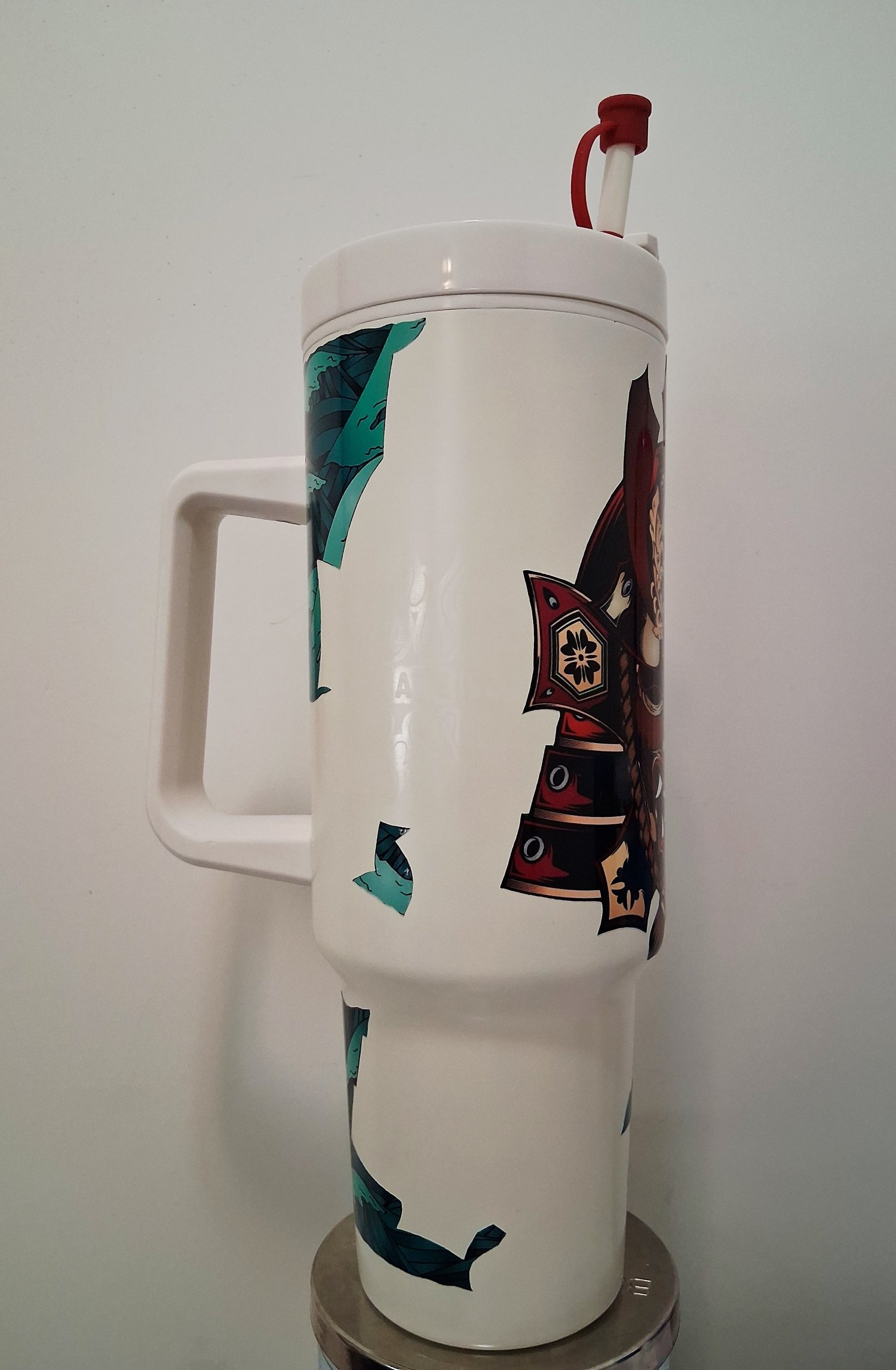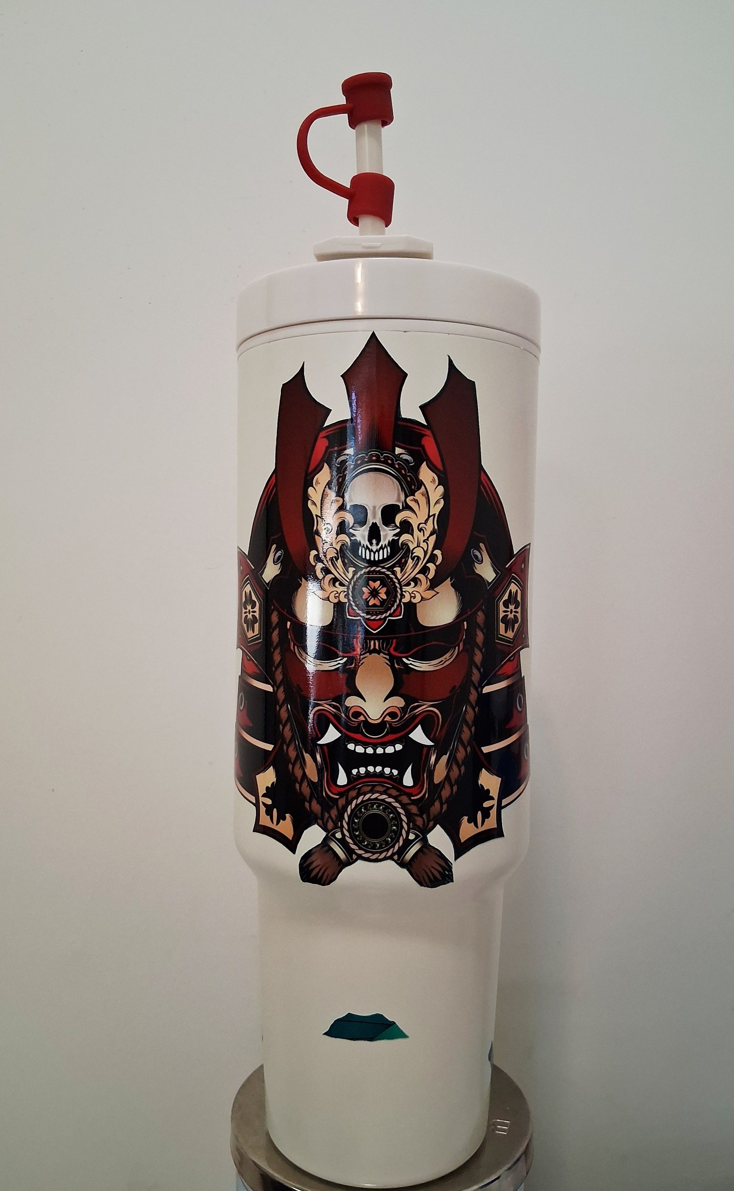 White 40 oz tumbler with a great Samurai image