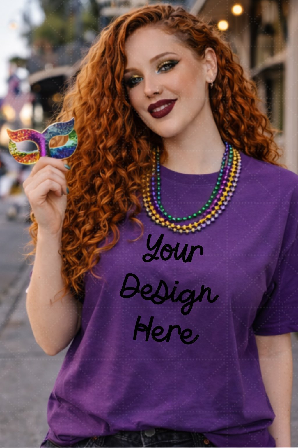 Mardi Gras Women’s Purple Tee Mock