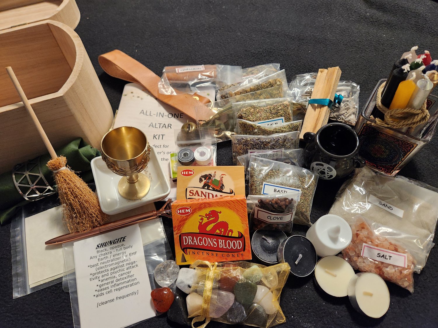 If you’re just starting out or need a set of your items for “on-the-go” this altar kit meets your needs!