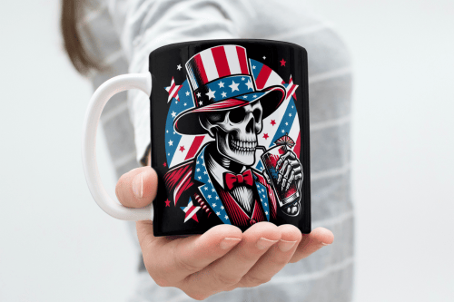 Create hilarious, eye-catching mugs with the Funny American Skeleton Mug Wrap Sublimation Design, and make this 4th of July one to laugh about! 💀🇺🇸
