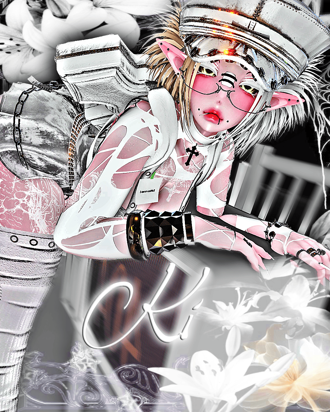 made by me ; back acc, bandaid, belt chain, bracelets, earrings, horns, lil buddy, nails, rings, bestie bracelets