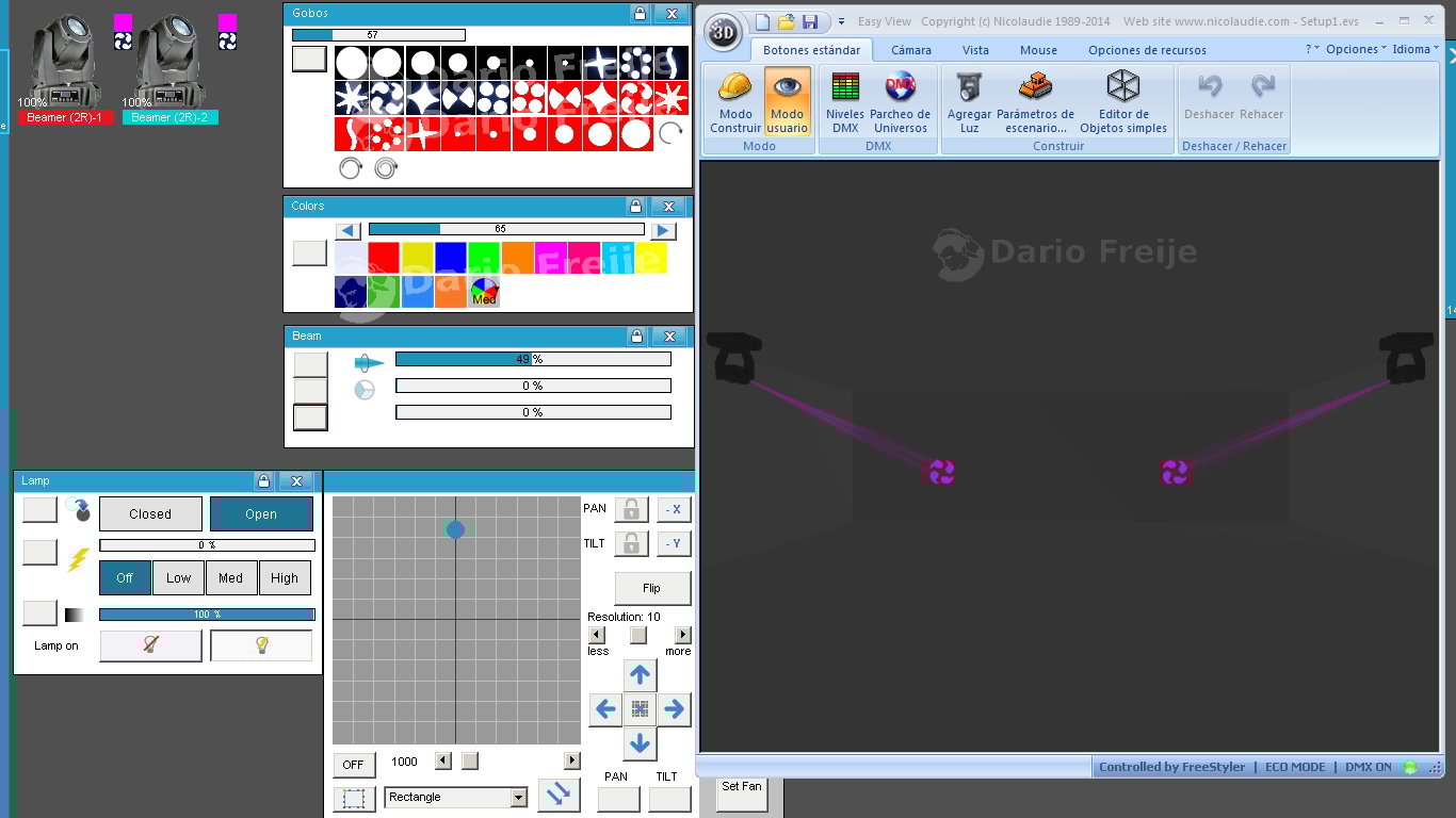 Esta Librería SSL2 está optimizada para trabajar con Magic 3d Easy View. Es decir para ver una representación 3D de las secuencias que estemos realizando con Freestyler, QLC+ o cualquier otro soft que se conecte con Magic 3d.