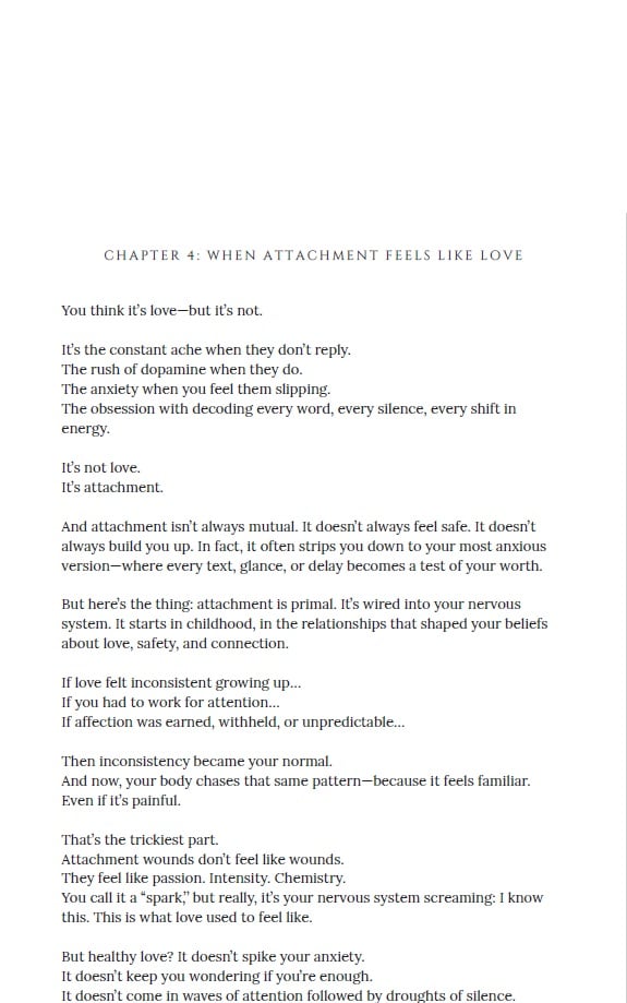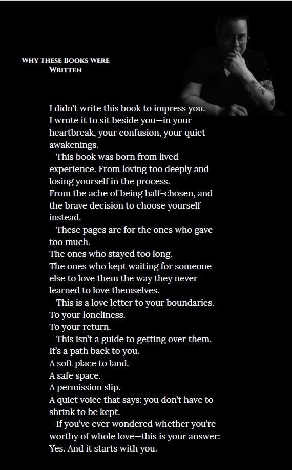 Inside these 22 pages, you’ll walk through the quiet grief of half-love, the ache of abandonment, and the courage it takes to reclaim yourself.