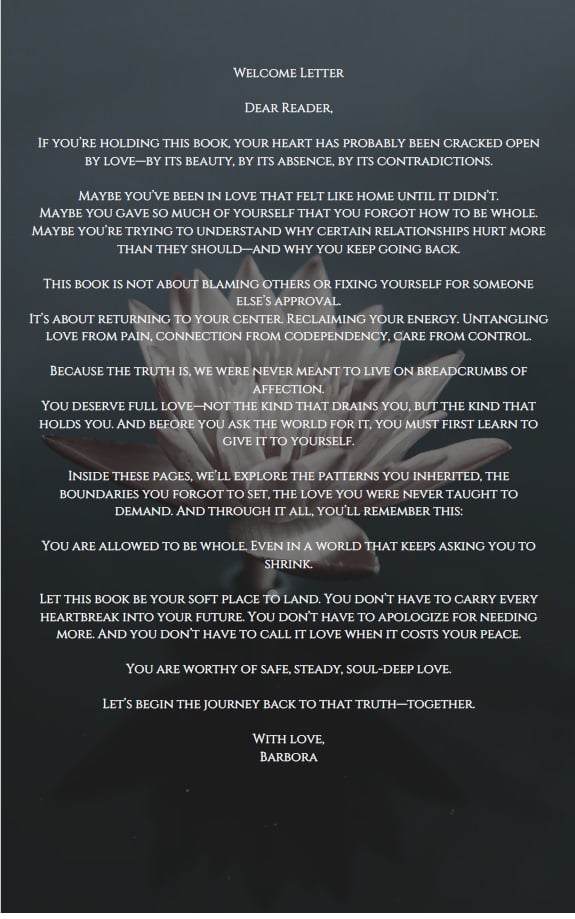 This powerful and tender eBook is a love letter to every version of you who ever stayed too long, gave too much, or forgot their own worth in the name of “love.”