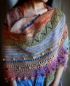 Advent Shawl is a crescent shape shawl, very delicate, light and colorful.