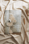 This Birthday Card template is, easy-to-personalize, cute design with a fluffy teddy bear.