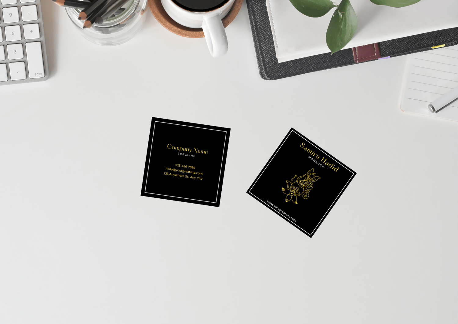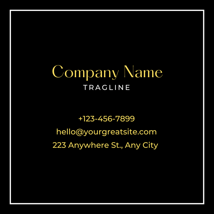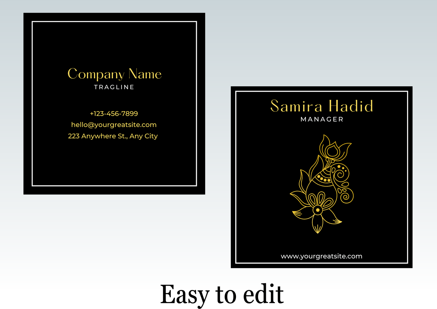 Simple Elegant Black Gold and White Floral Square Buiness Card