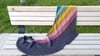 The Color Adventure Shawl Two is an asymmetrical triangle shawl that works best with a color-changing yarn that has long color changes like the sample yarn, Gauge Dye Works self-striping shawl yarn. Instead of working specific row amounts, whenever the color changes, you change stitch patterns.