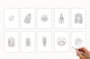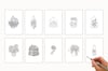 This set includes 20 hand-drawn designs as both printable watercolour templates (in black and light grey outlines) and matching transparent PNG digital stamps — so you can use them on paper or digitally in Procreate, Photoshop, or any art app.