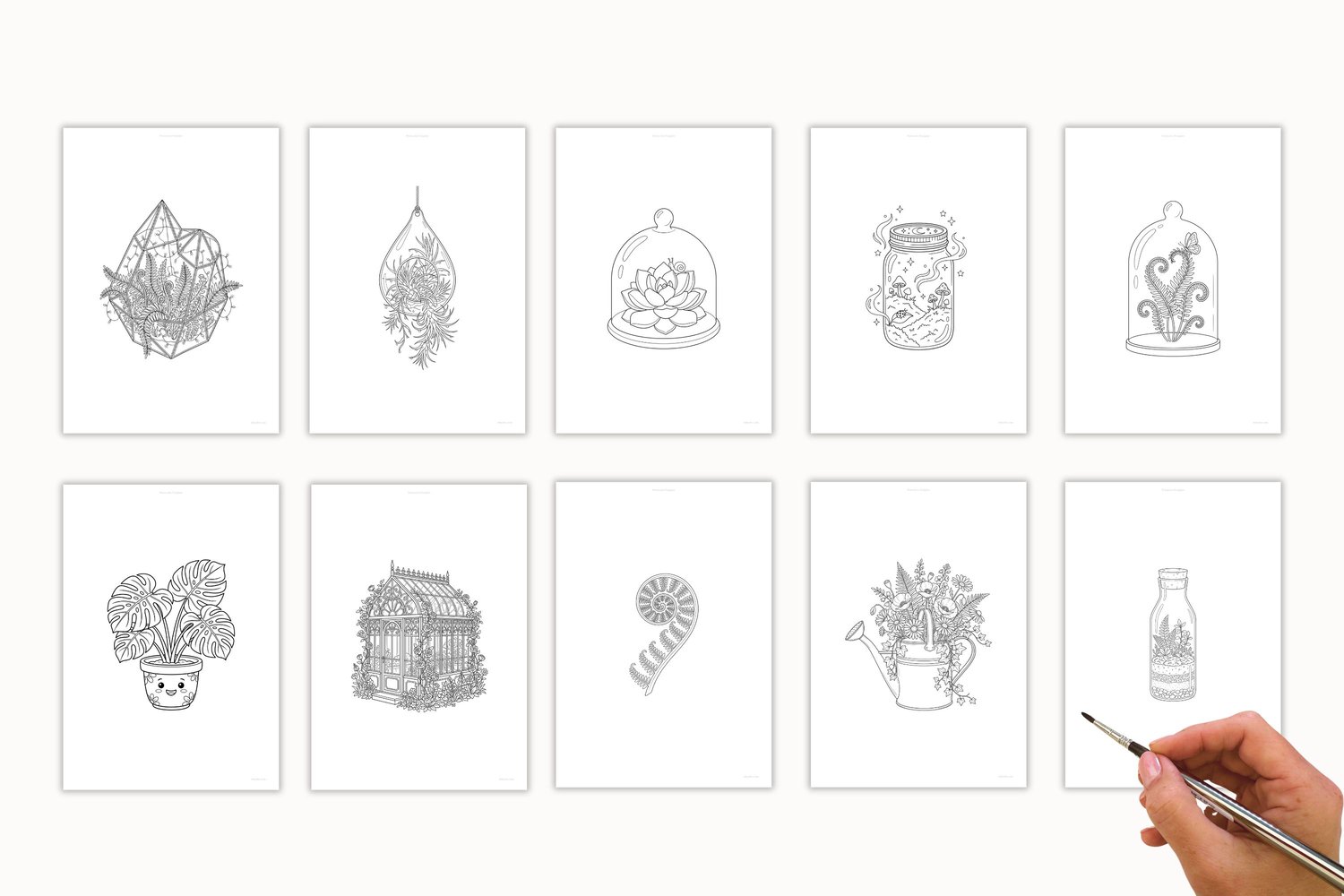Secret Greenhouse Watercolor Templates & Digital Stamps | 20 Printable Terrarium Outlines for Painting, Coloring & Card Making