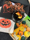 - omaggi: washi tape di Halloween, mini calderone con caramelle, sticker e una mollettina di legno con pipistrello.