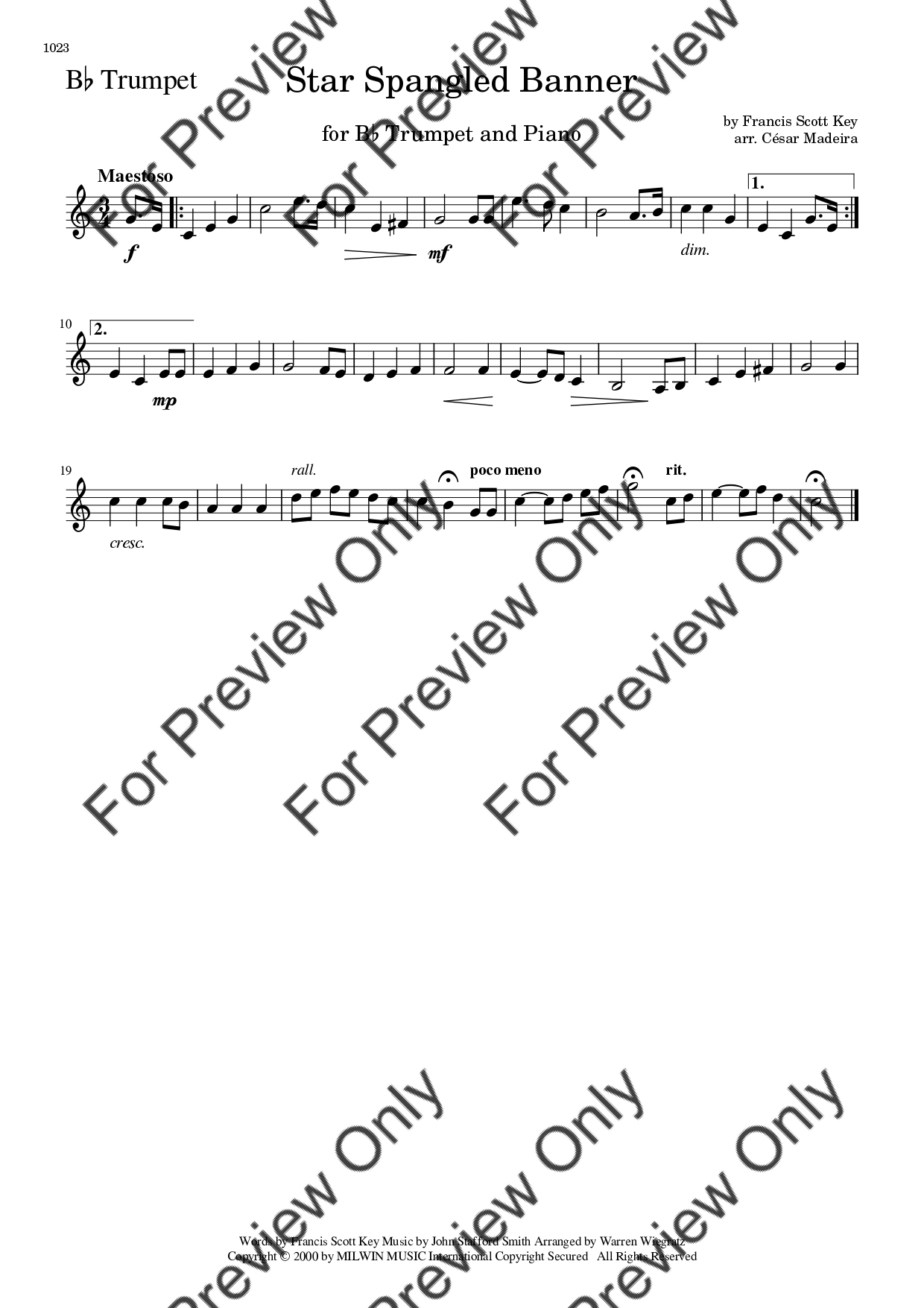 The Star-Spangled Banner. Arrangement for Bb Trumpet and Piano. With Full Score and Individual Parts. Have fun!