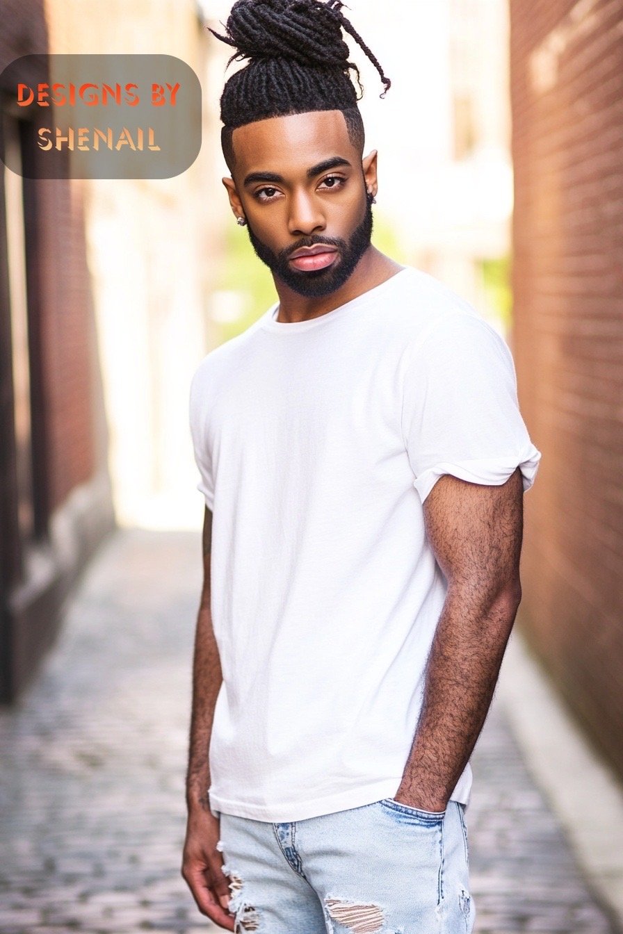 Make your designs stand out with this clean and edgy mockup featuring a stylish male model in a white rolled-sleeve t-shirt and distressed jeans. Perfect for showcasing sublimation, DTF, or vinyl designs with a fresh streetwear vibe.