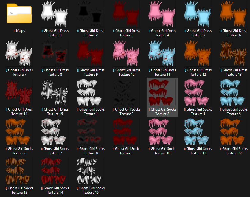 - This asset has 15 Textures for Dress and 15 Textures for Socks.