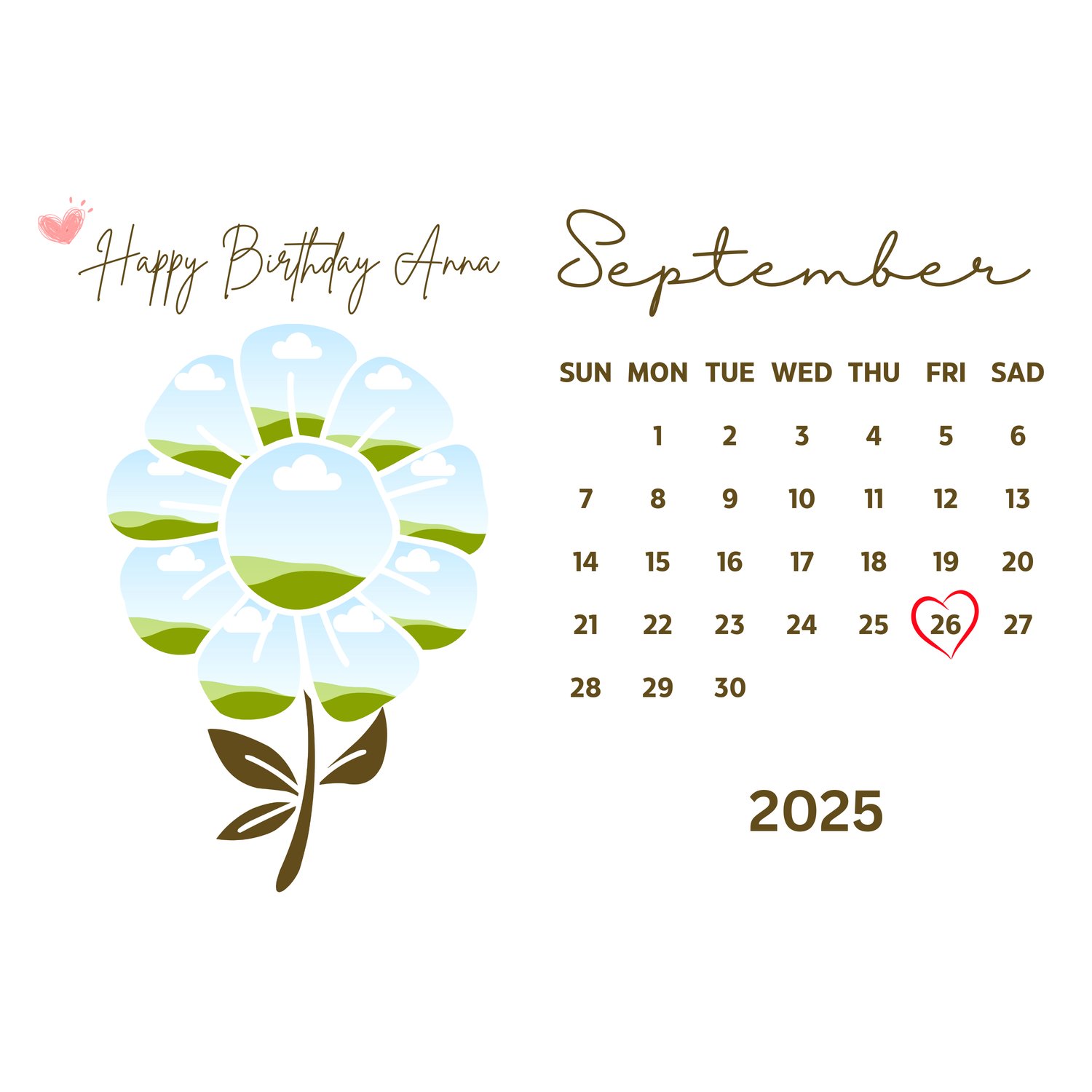 Flower Photo Collage Birthday Calendar September Canva Template Part 6