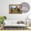 Horses in grassland, mountain backdrop, nature photography, serene landscape, countryside tranquility, grazing horses, lush greenery, majestic mountains, home decor art, peaceful ambiance, natural elegance, rural scenery, equine beauty, pastoral scene, decorative wall art, nature-inspired decor, scenic photography, calming environment, wildlife art, outdoor beauty.