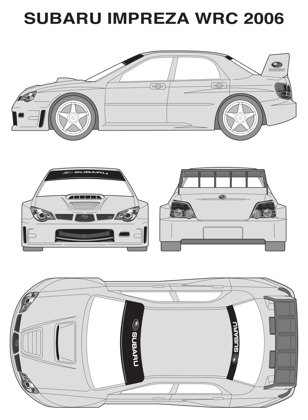 Subaru Impreza WRC 2006 Car Blueprint PDF SVG Vector Drawing.