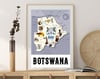 Botswana illustrated map Printable map of Botswana download Digital Botswana map print Nursery wall map print Botswana gifts decor kids room decor Educational poster