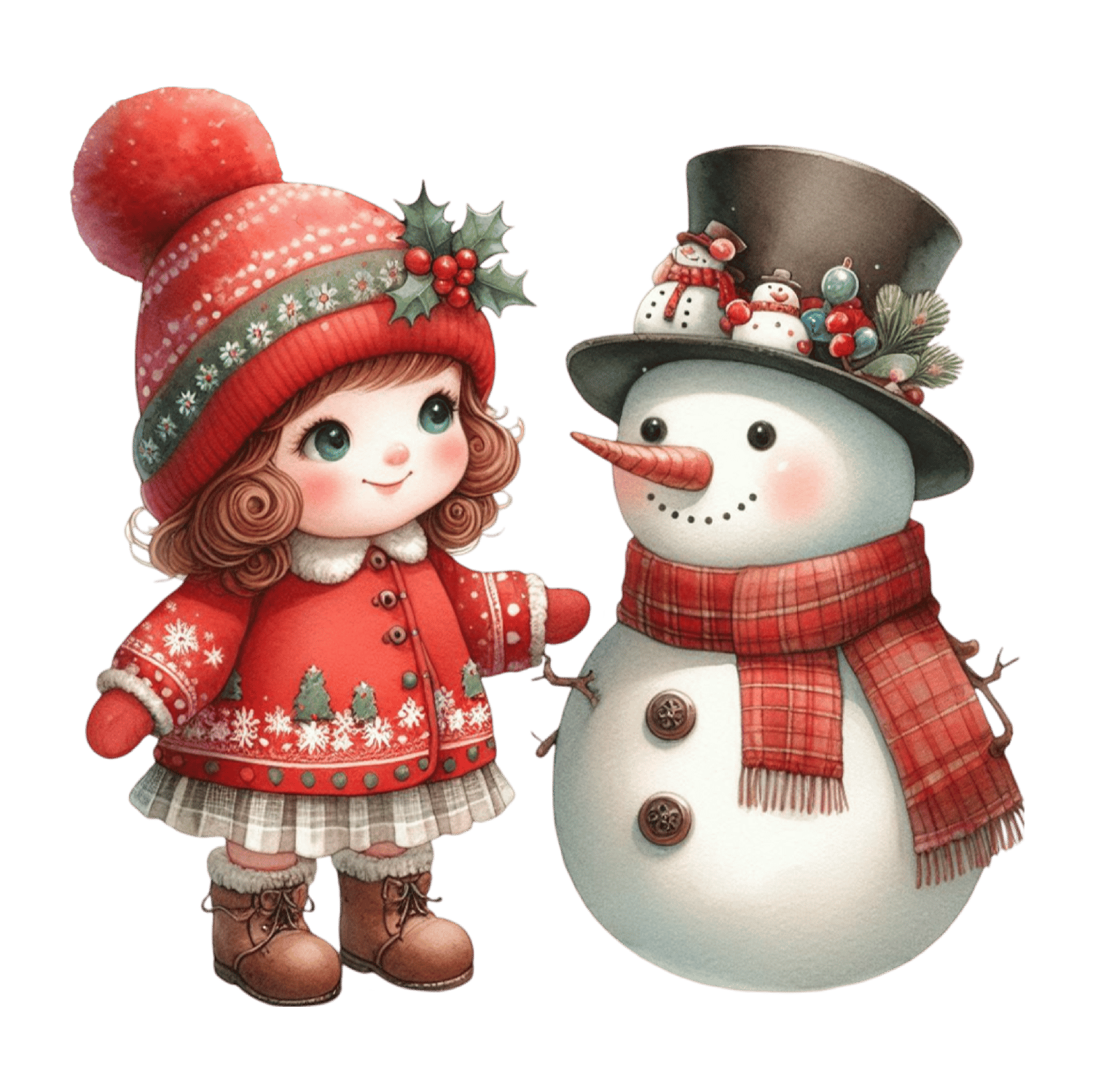 vintage child and snowman clipart